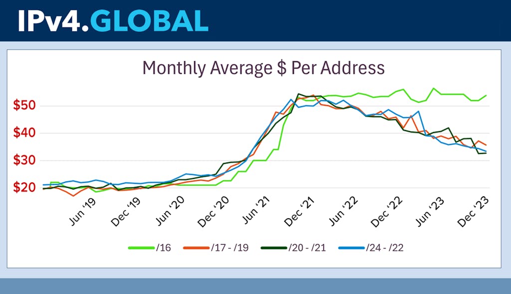 Data from IPv4.Global. For access to detailed information go to their Reports or live Prior Sales page.